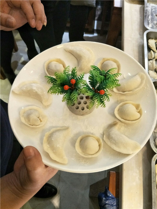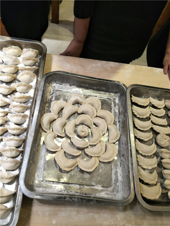 這是沖鋒隊(duì)的餃子,各式各樣的餃子擺成了花兒一樣的形狀喲